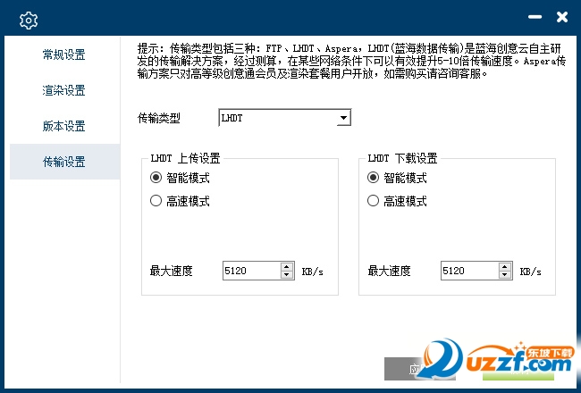 LHDT和Aspera传输模式,可以设置智能模式和高速模式。