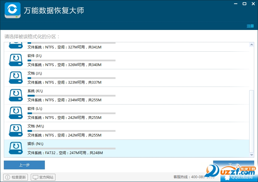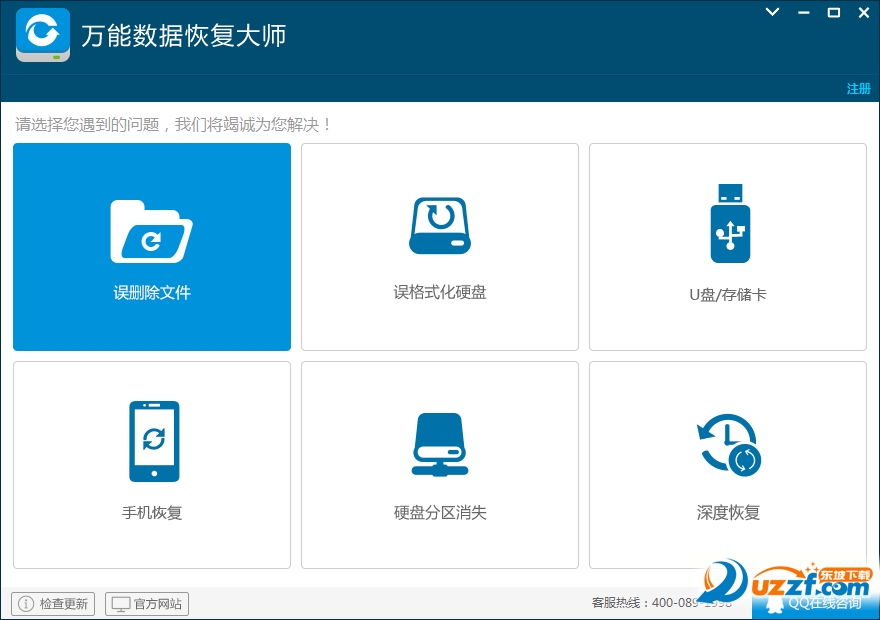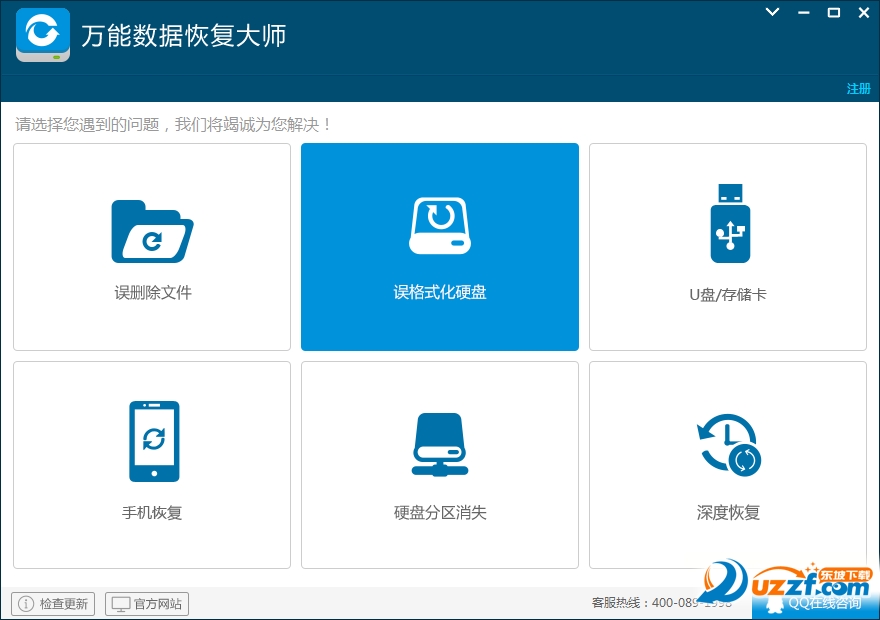 运行万能数据恢复大师,选择“误格式化硬盘”