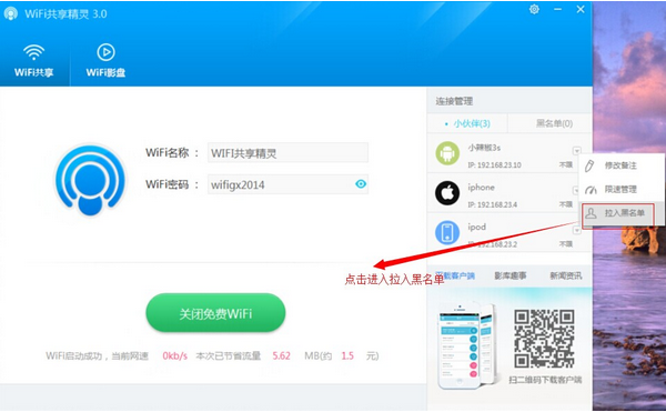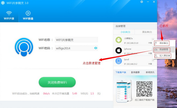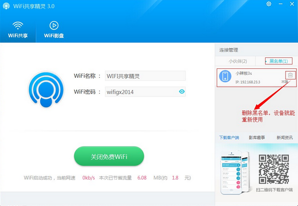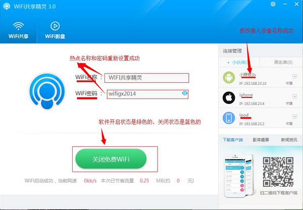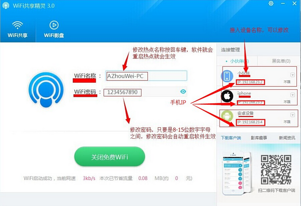 WIFI共享精灵是一款基于PC无线网卡应用的无线共享的软件。通过一键设置,将笔记本变成无线路由器,让WIFI手机及PAD实现共享上网,不需要服务器支持,支持消息收发。只需所处的区域有wifi网络,就能通过无线网络跟他人共享网络实现免费WIFI上网。