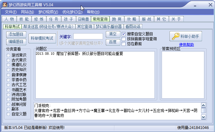 1.更新最新的元宵题库;(感谢官方论坛[百草小小舒])