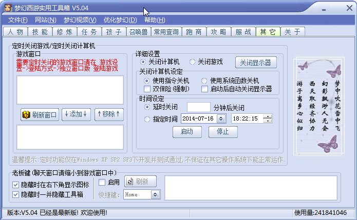 叶子猪梦幻西游工具箱是一款功能十分强大的梦幻西游实用工具箱,可以帮助你更加轻松的完成任务、快速升级、跑商、修炼等,还有一些游戏常用功能辅助,使你对游戏内容有更加详细的体验。
