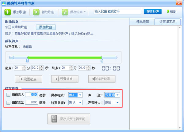 3、设置铃声效果,然后点击【保存并发送到手机】就可以了