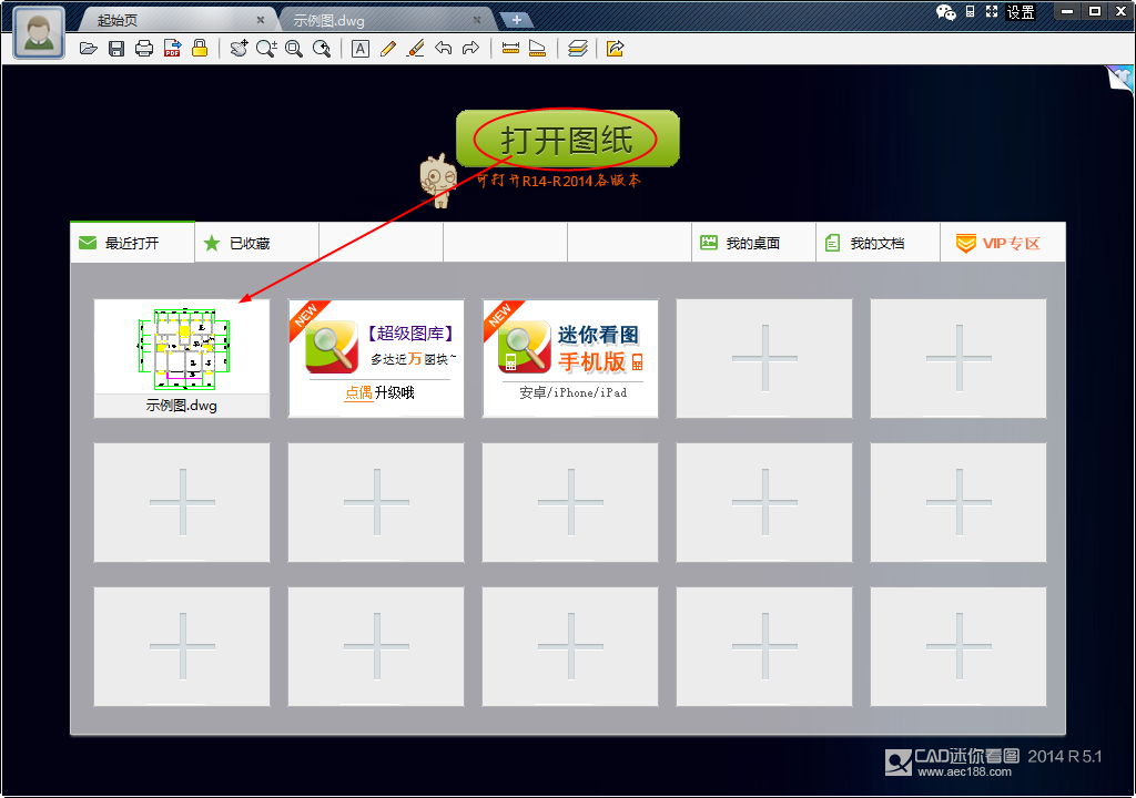 2、安装完成后启动软件,点击“打开图纸”选择要查看的dwg图纸;
