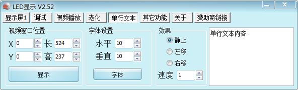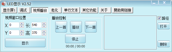 主要用于LED显示屏维修时显示箱体及模块位置和序号,老化功能用于LED显示屏老化时定时循环显示各个测试项目(如单色,渐变颜色,视频播放等)。