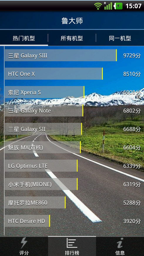3、可上传分数并查看排名,通过排名查看分数高的机型,也可查看当前手机的排名位置。