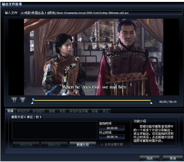 完善的视频编辑功能,支持批量转换,视频合并、外挂字幕、剪辑、裁切、图文水印。