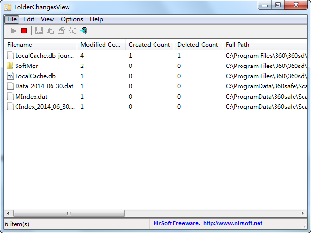 FolderChangesView是一个非常小的文件监控软件,体积只有50多KB。启动监控后,该软件能记录下电脑硬盘中的文件的每一个动作,包括创建、修改、删除等,通常情况下这些动作只会通过硬盘监控灯的闪烁来体现,而这款软件可以让你清晰的查看每一个动作。