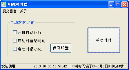 有时候由于某些故障导致系统时间出错,我们需要对准网络时间同步,在这小编为您介绍一款夸鸥对时器,绿色小巧,实用精确,它的时间与国家时间中心同步,支持开机自动校时。