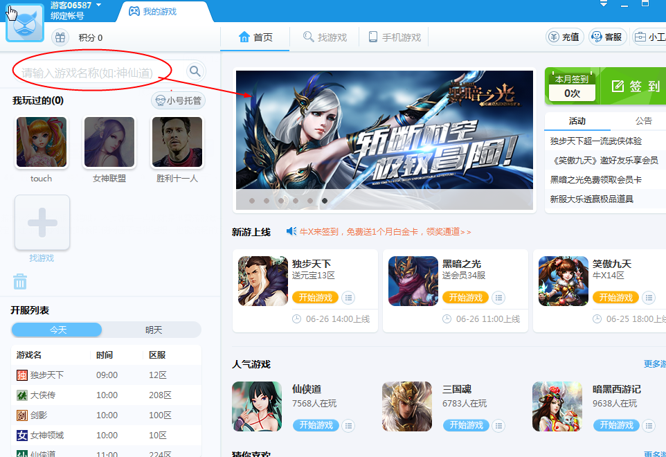3、进入主界面,可以再左边那个空白地方输入游戏名字,这个是记的游戏名字的情况下