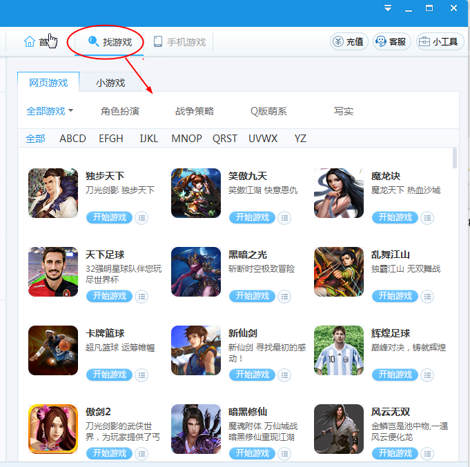 6、还可以点击小工具,在那里面还有别的游戏网站供你选择
