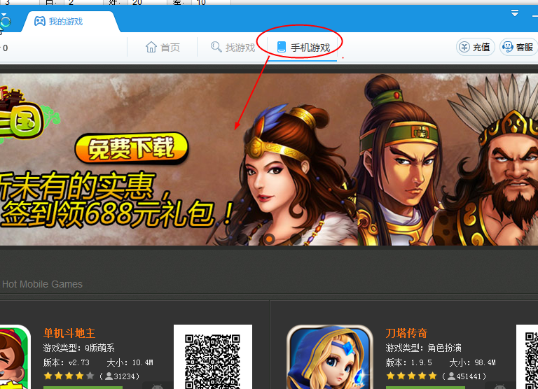 5、点击【手游戏】可以在里面下载你喜欢的的手机游戏