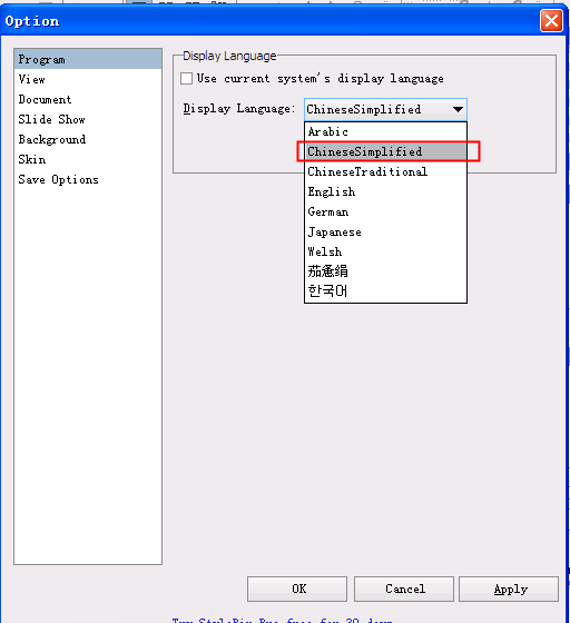 2、选择【Program】-【Display Language】-【ChineseSimplified】-【Apply】