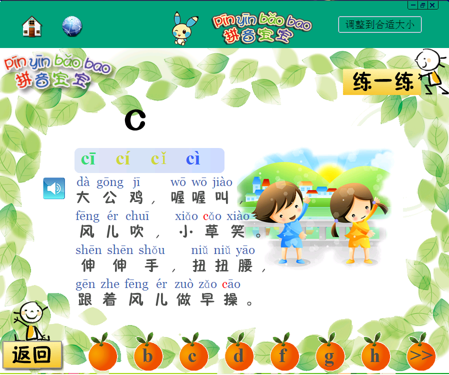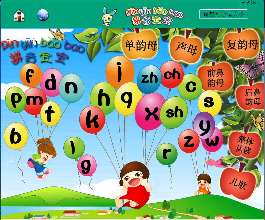 这是一款儿童拼音学习软件,适合学龄前及刚入学的儿童学习,能够帮助儿童快速学习拼音,从动画和语言上领悟学拼音的乐趣,更快达到标准音的效果。
