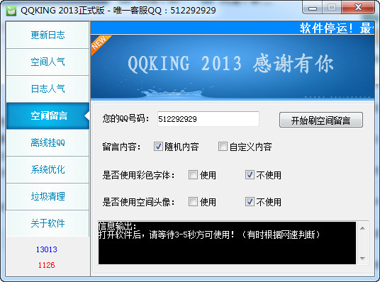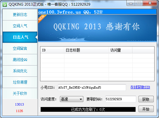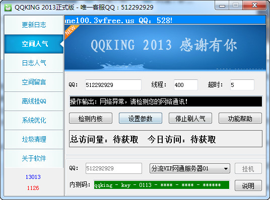 02.2013新版刷空间人气功能,解决网络异常等常见问题!(注:停止刷人气功能后需重新检测设置后方可重新开始)