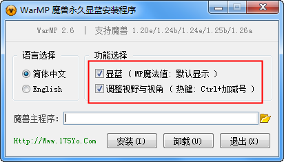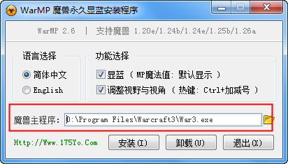 WarMP是一个魔兽永久显蓝辅助工具,支持魔兽争霸1.20e/1.24b/1.24e/1.25b/1.26a,只需安装一次该程序便可永久显蓝。支持Dota、真三、澄海、信长、忍村等各种魔兽地图。