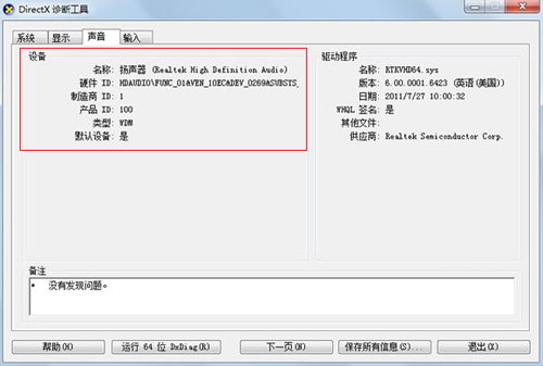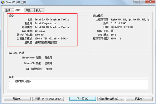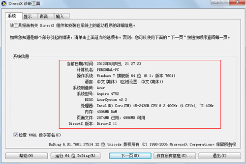 2、这时我们可以查看系统、显示以及声音的硬件配置情况。
