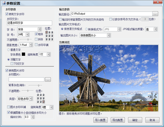 3.文字水印支持普通文字和浮雕文字,其中浮雕文字水印效果在同类软件中很少能有 。