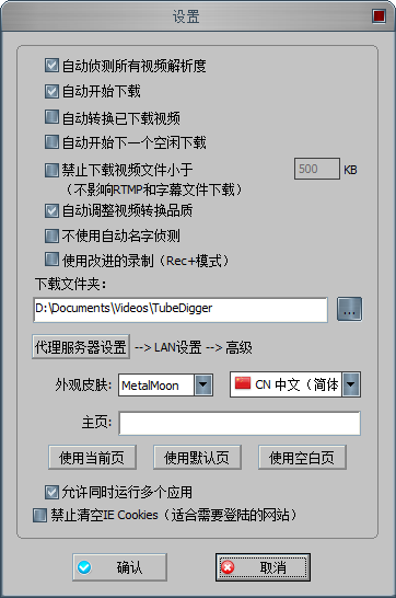 2、点击设置按钮可以设置下载的视频保存位置等信息