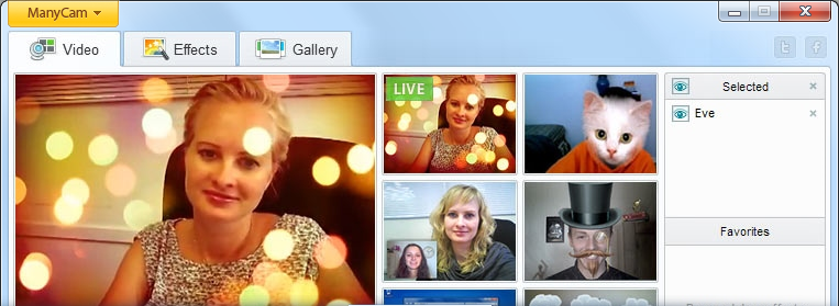 ManyCam是一个多功能的摄像头增强软件,它不仅能让你的摄像头拍摄效果产生特效,还具有分屏功能。我们在影音视频聊天室通常会同时和多个好友聊天,无奈摄像头总是不够用,ManyCam就是专门解决这个问题的,它能同时让多个即时通讯软件的视频视窗都显示目前本机摄像头所拍摄的内容,无论你用的是MSN还是QQ、Skype等,都不是问题!你的影音视频聊天室好友一个也不会错过!