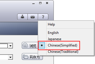 大家启动程序后,点击界面右上方的问号按钮,然后选择Chinese即可设置为中文!