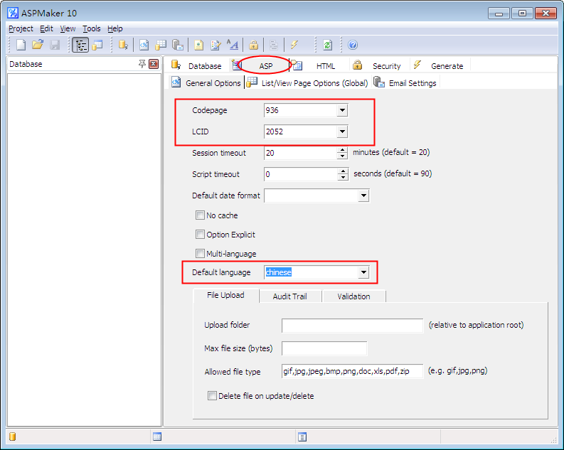 使用方法:将压缩包中的XML文件解压到ASPMaker下的languages目录下,接着进入软件进行设置,点击ASP ,依次选936、2052、Chinese.xml,如下图所示!