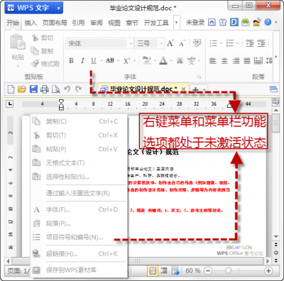 ⑤保护文档设置成功后,无法通过鼠标光标选择文档中的任何内容,右键菜单和菜单栏的功能按钮都处于未激活状态,无法使用,如【图4】所示;