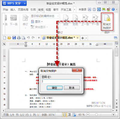 ⑤取消文档保护:点击菜单栏【审阅】→【取消文档保护】即可,如【图5】所示