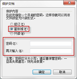 ③点击【保护文档】,打开【保护文档】对话框,选择【窗体域】