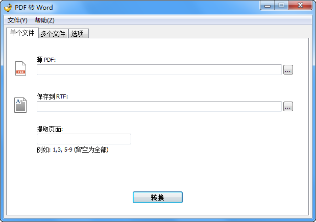 指定你要转换的源 PDF 文件,然后指定输出 Word 文件,单击转换开始转换。