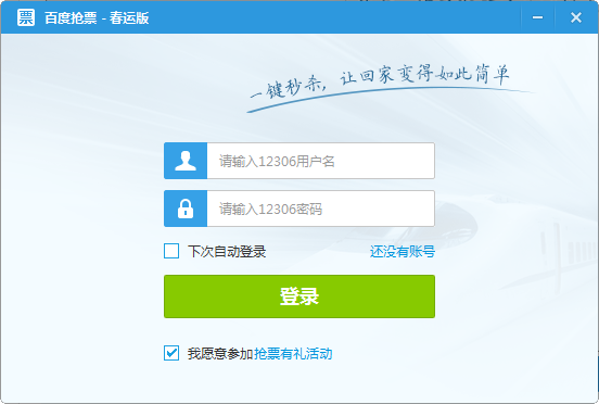 第二步,输入12306账号和密码登录百度抢票