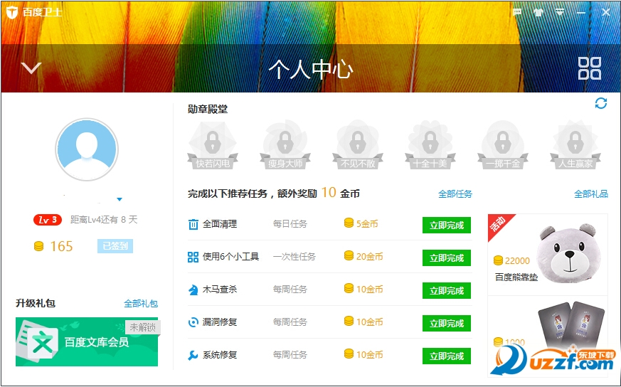 更美的百度卫士,全新的礼物盒皮肤。改变为你,加速有礼。加速即可领金币。
