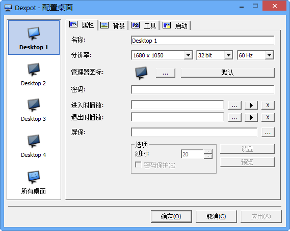 可单独对每个桌面进行配置