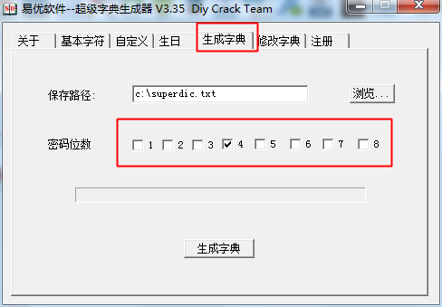3、选择生成字典选项,这里小编就选择4位数的密码,保存路径大家可以自由选择,点击生成字典。