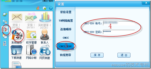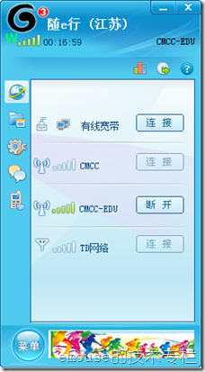 三、客户端使用说明(可通过客户端连接互联网。本客户端软件提供了CMCC、CMCC-EDU、以及TD网络的连接功能)。
