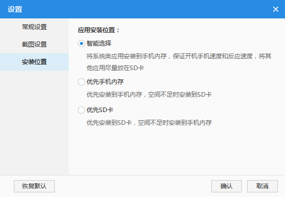 软件支持智能选择安装位置,保证手机的开机速度和反应速度