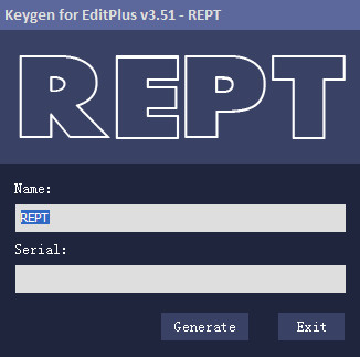 安装完成后,需要注册软件,这时打开EditPlus Keygen.exe,点击Generate获取注册码