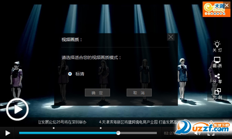 * 支持普通 / 高清视频切换;支持视频模式切换(等比模式/拉伸模式/原始尺寸/双倍大小);
