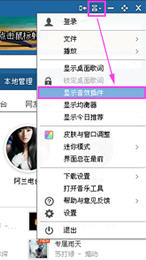 打开酷狗,点击软件又上角的第二个图标“主菜单”,选择“显示音频插件”: