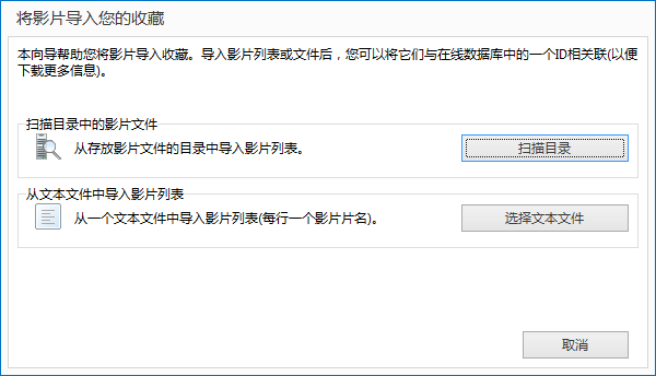 支持从硬盘中搜索影片,然后从互联网上下载相关信息