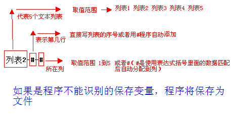 如: 列表3-#-3 这个代表的意思是把符合表达式匹配的数据保存在列表3中的第3列,如果有多条数据会自动添加行