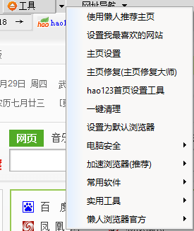 浏览器具有多个实用工具,可以一键设置主页、清理缓存等
