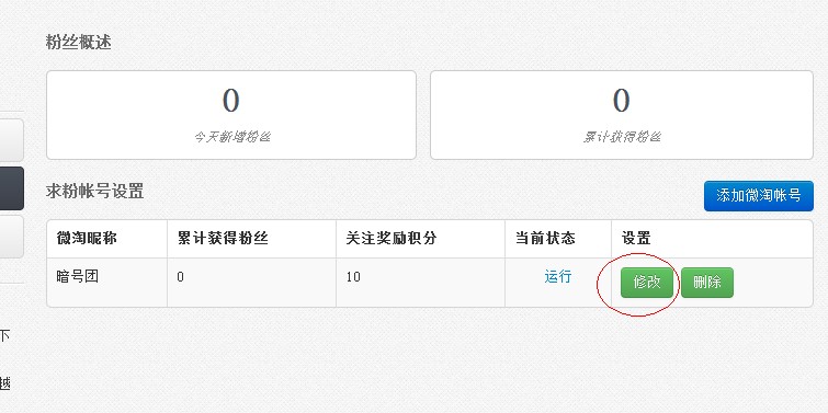 3、求粉设置,设置奖励积分,点击修改设置关注奖励积分