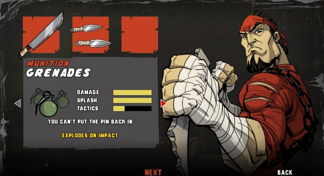 《闪克2[5]》的一开始,就让人们体验到它对于装备选择的重视程度,玩家不用带着一兜子乱七八糟的武器去打打杀杀,而是要在游戏前就选择好适合自己的重武器,轻武器,以及道具,例如玩家一开始只能使用砍刀,飞刀和炸弹等工具,之后随着游戏的进行,会不断的解锁新的武器和道具,例如玩家们最喜爱最杀戮的大电锯。