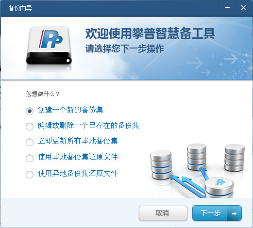 1..首次运行备份软件,点击【备份向导】创建一个新的备份集