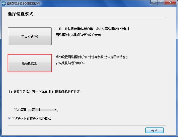 点击“高手模式”,搜索并配置局域网下的网络摄像机。