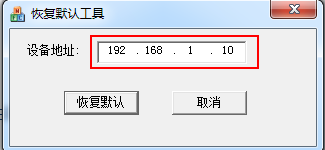 二、然后开复位工具,输入摄像机的内网IP地址,点击恢复默认,当出现重启设备提示框时,将摄像机插拔电源即可。