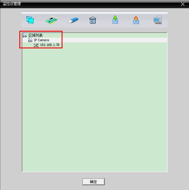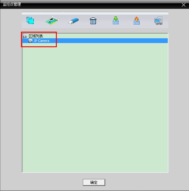 确定之后,在区域列表中,会显示用户刚才岁添加的摄像机