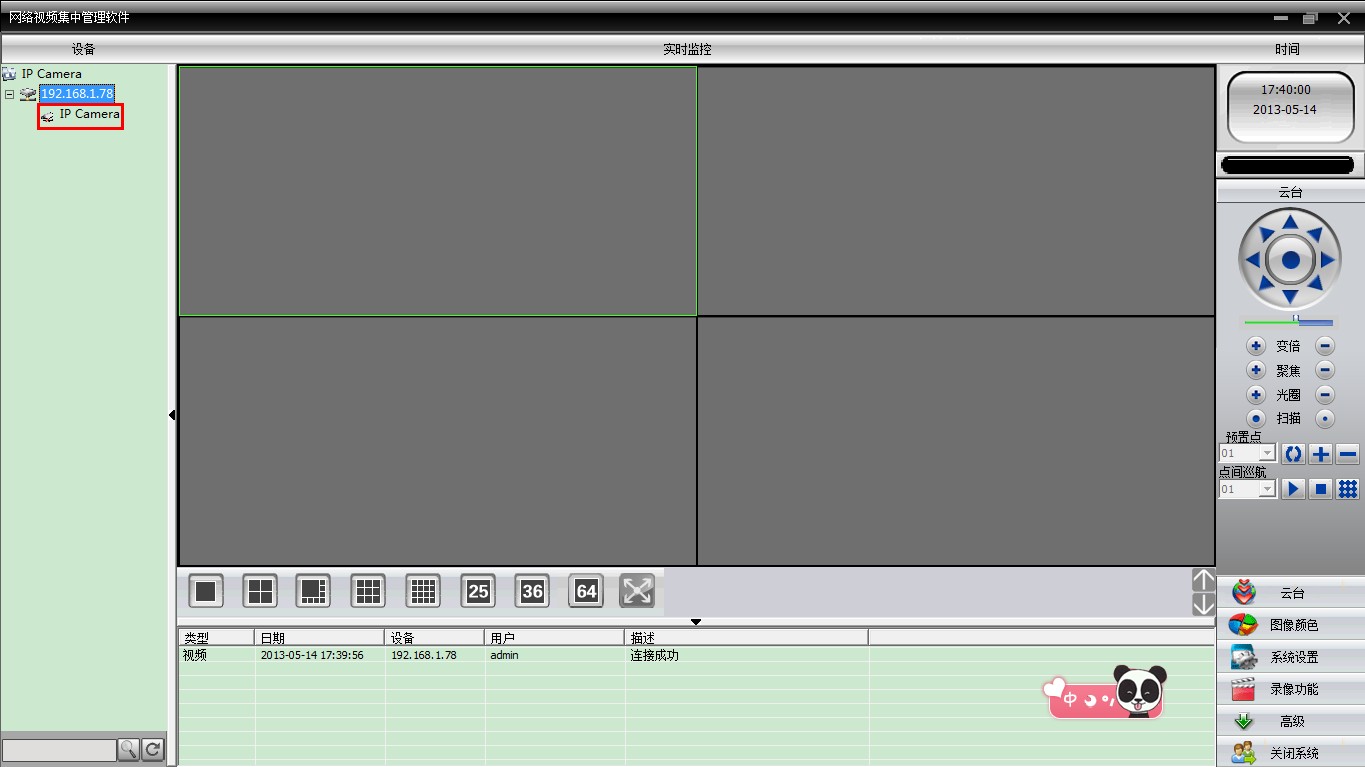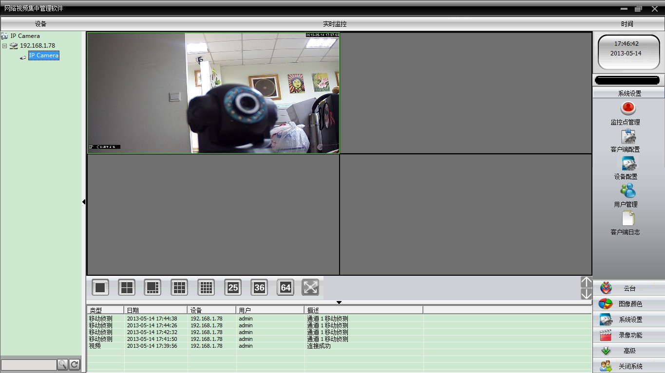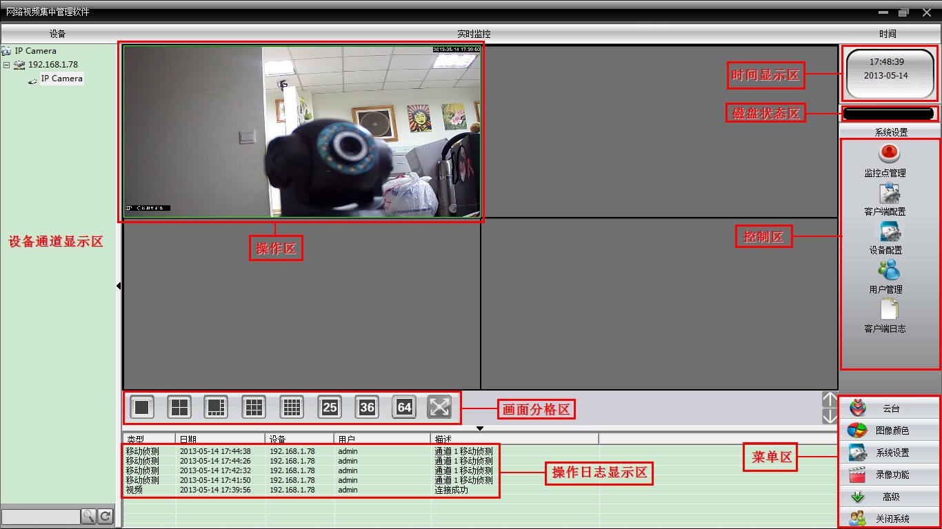 画面模式选择区:根据需要选择显示监控的通道数量。