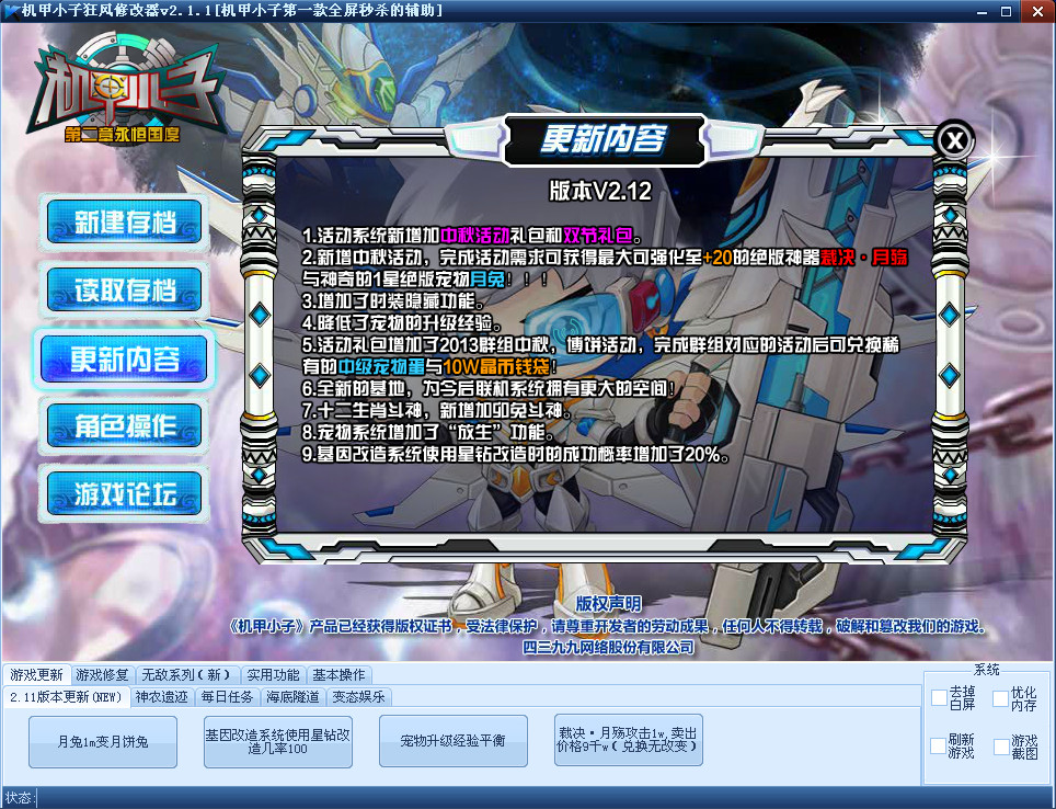 机甲小子狂风修改器更新日志