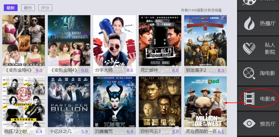 2、也可以选择“电影库”来查询自己喜欢看的电影